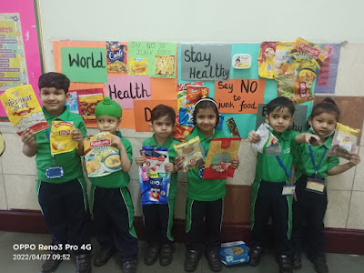 The little champs of class nursery, pre-primary and 1 celebrated The World Health Day with great enthusiasm and zeal. The class teachers started the class session by drawing the attention of our little bundles of joy towards healthy eating habits. They were also elucidated about the importance of eating green vegetables, fruits, milk products and should avoid eating junk food. The kids made healthy sprout and vegetable sandwiches, did Zumba exercises, ate fruit salad and acknowledged the need of developing a healthy lifestyle.